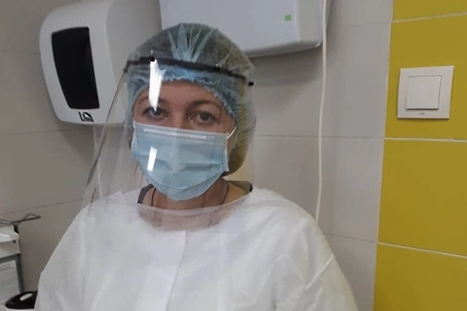 На фото врач в щитке производства российских мейкеров