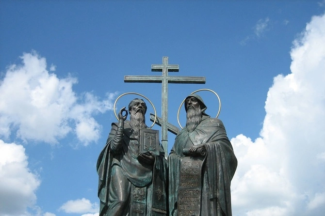 Памятник Кириллу и Мефодию на территории Коломенского кремля