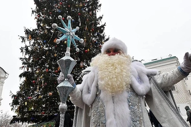 Дед Мороз на улице в центре Москвы развлекал прохожих