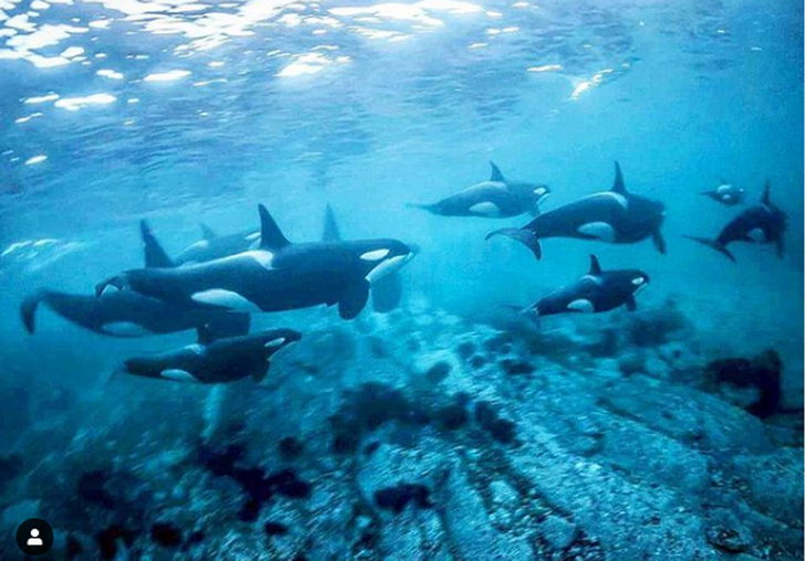 Тем не менее, самым большим счастьем в этом году были снимки не гренландских китов, а косатки с таким трекером, которая успешно влилась семью и охотилась вместе с ней.