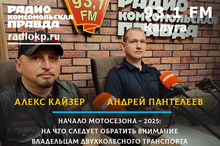 Гости студии начальник отделения анализа и пропаганды БДД отдела Госавтоинспекции УМВД России по г. Калуге Андрей Пантелеев и представитель мотосообщества Калужской области Алекс Кайзер.