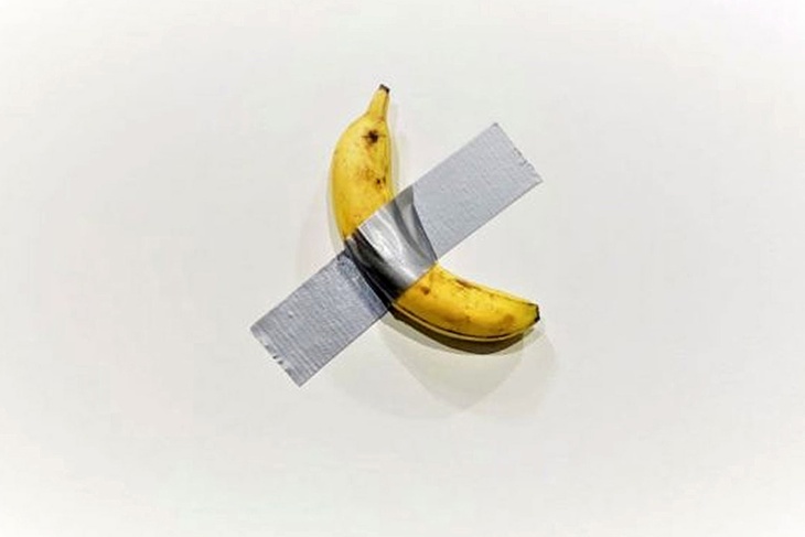 Банан, прикрепленный скотчем стене, был представлен на выставке под названием «Комедиант». «Шедевр» является творением итальянского дизайнера Маурицио Каттелана.