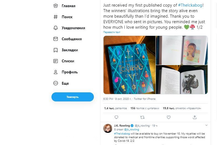 Английская писательница Джоан Роулинг заявила, что гонорар за свою новую детскую книгу «Икабог» (The Ickabog) пожертвует медицинским и благотворительным организациям, работающим с пострадавшими от COVID-19.