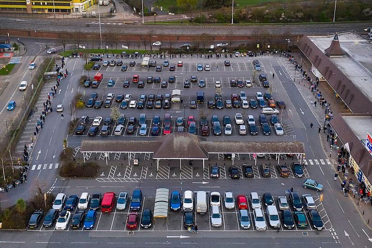 Британская пресса публикует шокирующие фотографии с беспилотника, который снял гигантскую очередь возле супермаркета Tesco в Лондоне.