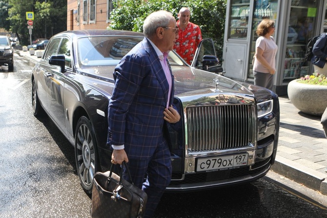 Но представитель «рыдающей» стороны Александр Добровинский презентовал себя не менее эффектно, чем его коллега. Адвокат припарковал свой черный Роллс-Ройс и с невозмутимым видом прошел в здание.