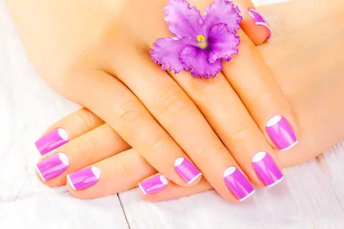 Всем известный французский маникюр (тонкая полоска белого лака на кончике «нюдового» ногтя) немного изменили. Теперь полосок стало две и больше, а цвет может быть любым. Да и база не обязательно должна быть камуфлирующей — подойдут буквально любые оттенки.