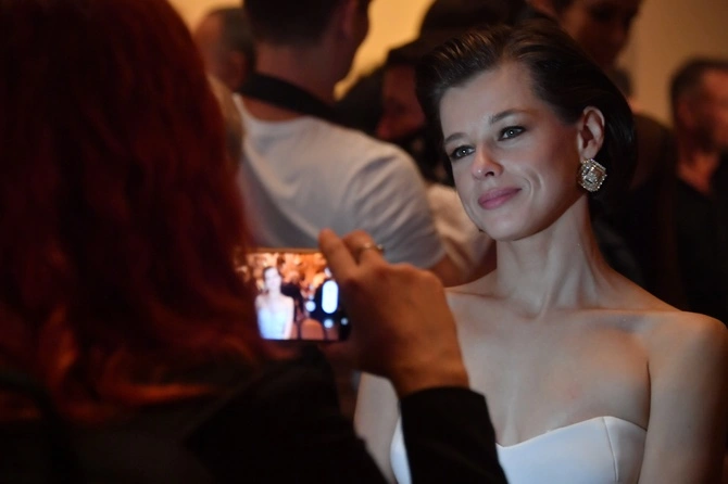 Актриса выбрала для церемонии открытия фестиваля экстравагантное белое платье с разрезом.
