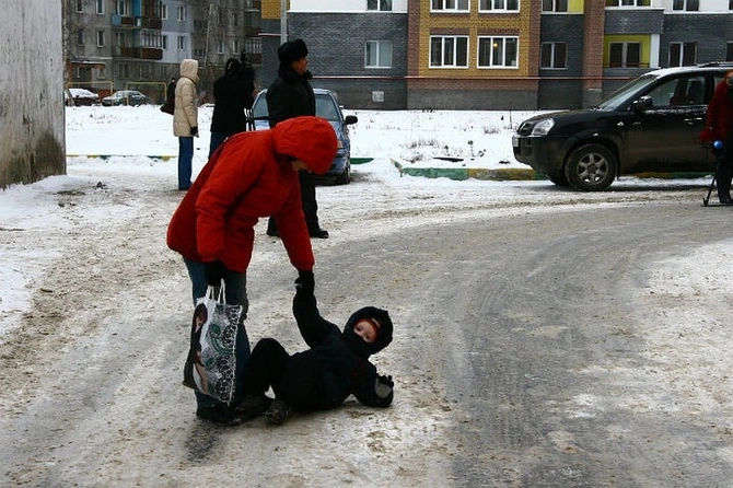 Медик порекомендовал идти, широко расставляя ноги, подниматься или спускаться с горки боком, а также не держать руки в карманах во время движения.