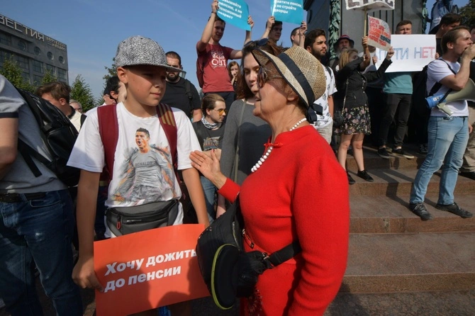 Участники митинга против пенсионной реформы.