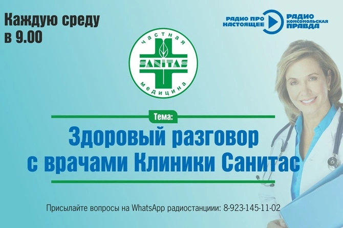 Многопрофильный медицинский центр Клиника «Санитас» - это сильнейшие доктора самых разных специальностей, это современные методы и технологии. А еще Клиника «Санитас» - это эксперты, которые готовы ответить на ваши вопросы в прямом эфире Радио «Комсомольская правда».