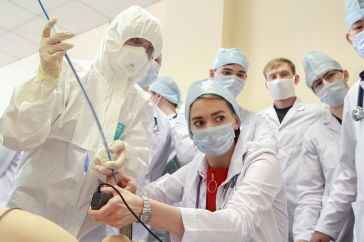 Врачи осматривают пациента с коронавирусом