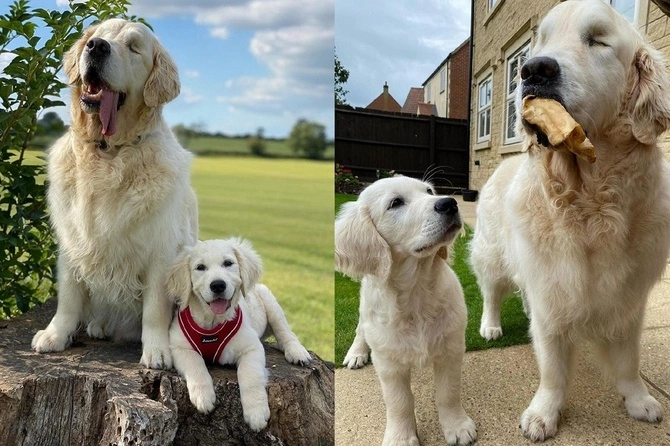 Не бойся, я с тобой: щенок стал поводырем у слепого ретривера