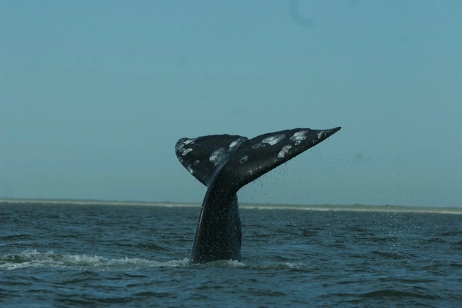 Краснокнижный кит запутался в сетях в Охотском море