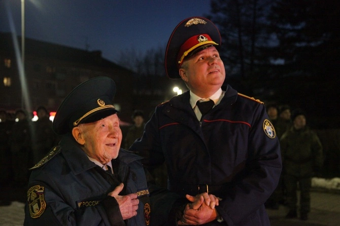 Салют из сотен ярких огней устроили в Смоленской области служащие Следственного комитета для ветерана Великой Отечественной войны Ивана Васильевича Соколова в честь 23 февраля.
