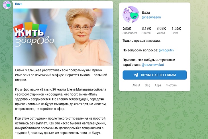 По информации Telegram-канала Baza, 29 марта Малышева собрала своих сотрудников и сообщила, что передача ориентировочно не будет выходить до сентября, но и потом, скорее всего, не вернется в эфир.