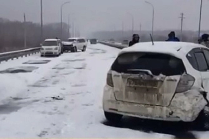 Около 50 разбитых машин: из-за снега и гололеда во Владивостоке произошло массовое ДТП