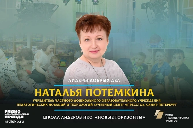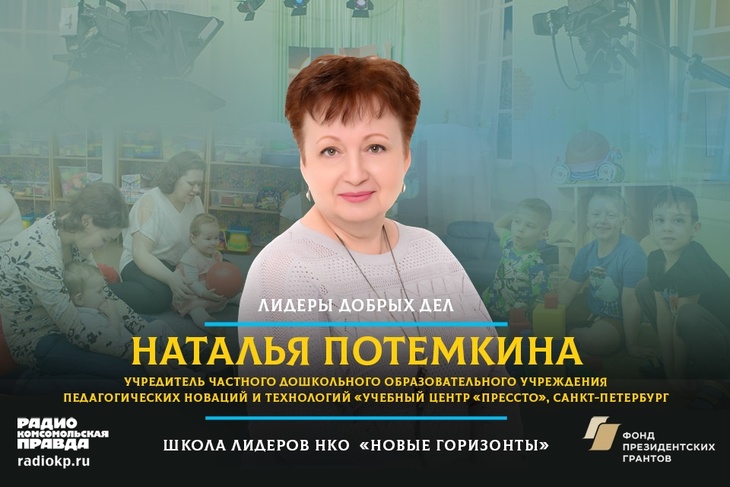 В эфире Радио «Комсомольская правда» генеральный директор частного дошкольного образовательного учреждения педагогических новаций и технологий «Учебный центр «Прессто» из Санкт-Петербурга, лауреат всероссийской премии «Страну меняют люди», председатель педагогического совета учреждения и разработчиком инновационной образовательной программы «Личность» Наталья Потемкина.