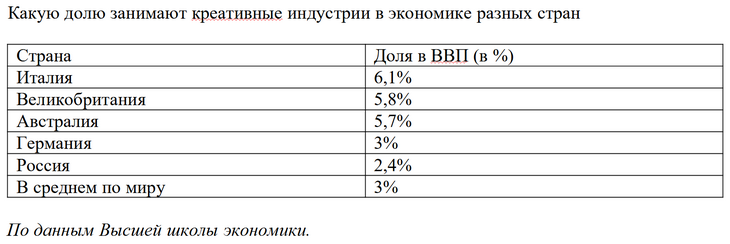 - Доля креативного сектора в экономике неуклонно растет. И лидерами являются такие страны, как США, Япония, Австралия. Мы приближаемся к среднему уровню по экономическому развитию в сфере креативных индустрий – это почти 3%. А хотим выйти на 7% ВВП. Меры по ускоренному развитию сектора креативных индустрий, предпринятые в России, дают реальные результаты. По количественным показателям он развит на среднемировом уровне, по качественным близок к состоянию развитых стран. При этом, я считаю, потенциал креативных индустрий в нашей стране используется далеко не полностью.