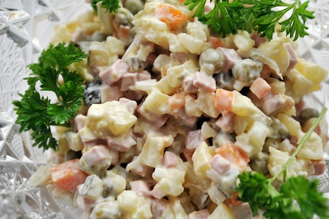- Давайте вернемся к салату как главному украшению стола. Вы сказали, что оливье очень тяжелый. Может быть, его чем-то заменить?