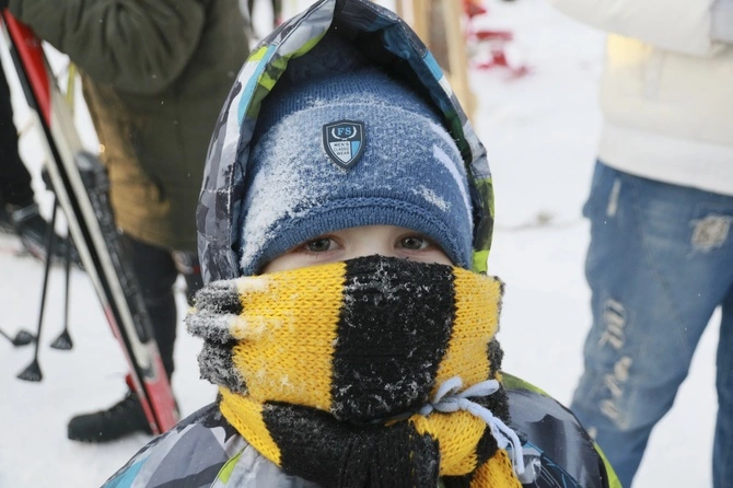 Ребенок в мороз, укутанный шарфом