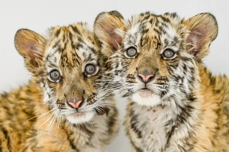 На свет малыши появились еще в мае. Сейчас они уже не только открыли глазки, но и превратились в энергичных и игривых маленьких хищников. Питаются они пока еще материнским молоком, но мама-тигрица уже приносит им мясо.