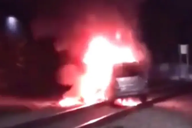 Иномарка, застрявшая на рельсах, полыхала огнем