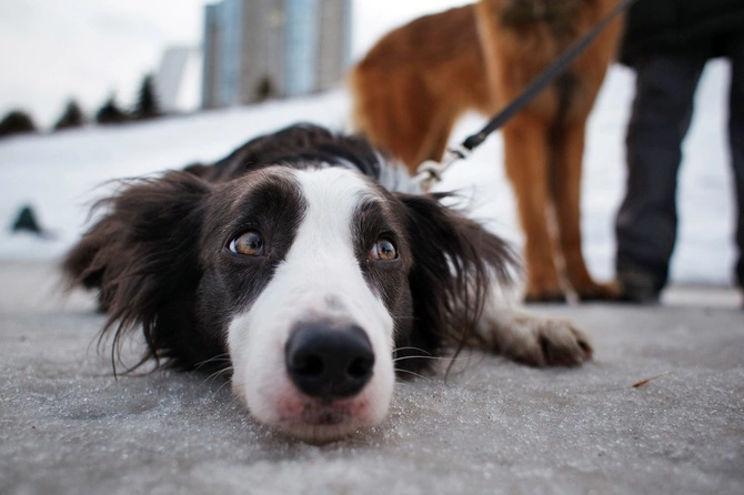 Собака лежит на льду