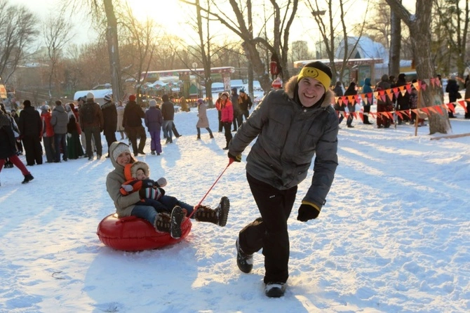 семья зимой радуется