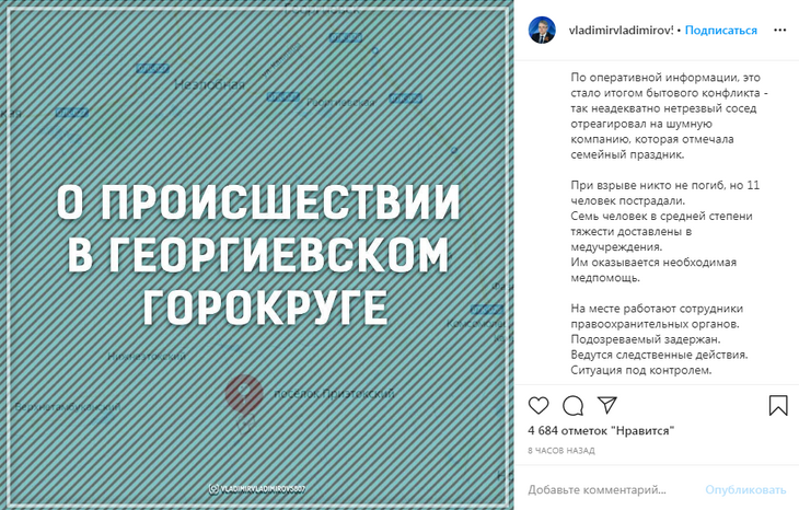 Губернатор региона Владимир Владимиров на своей странице в Instagram отметил, что на данный момент подозреваемый задержан.