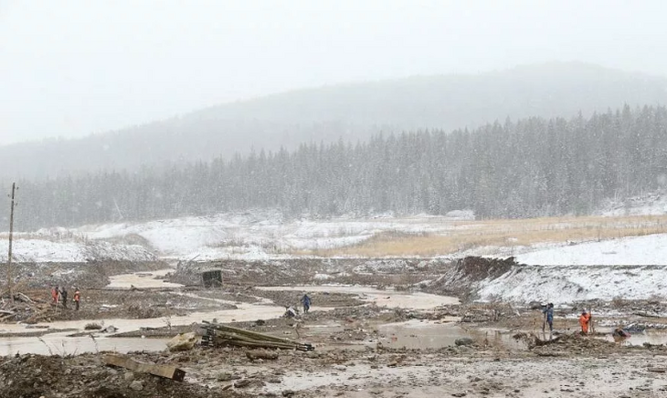Место разрушения дамбы в Красноярском крае