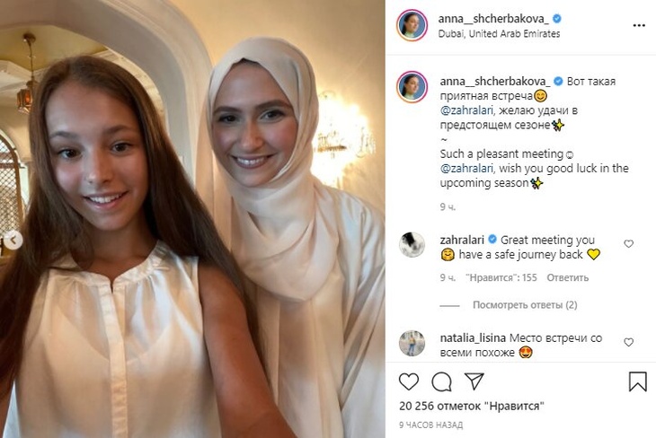 Чемпионка мира в одиночном катании Анна Щербакова выложила в Instagram фотографию из отпуска в Дубае с двукратной чемпионкой ОАЭ Захрой Лари.