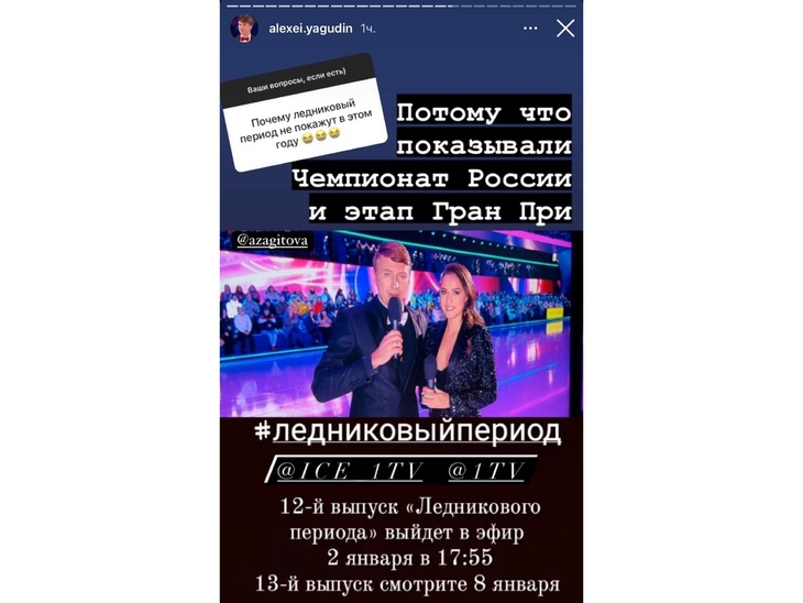Об этом сообщил ведущий программы Алексей Ягудин на личной странице в Instagram.