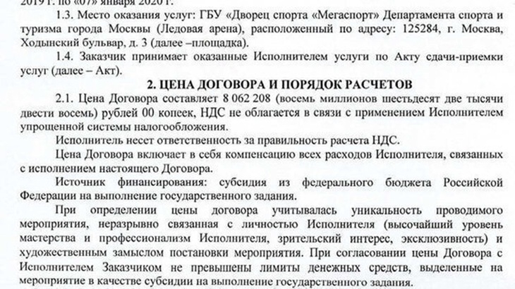 В договоре с организаторами шоу указано, что Аксенов оказывает Росконцерту услуги в качестве артиста, хотя он никогда не был фигуристом.
