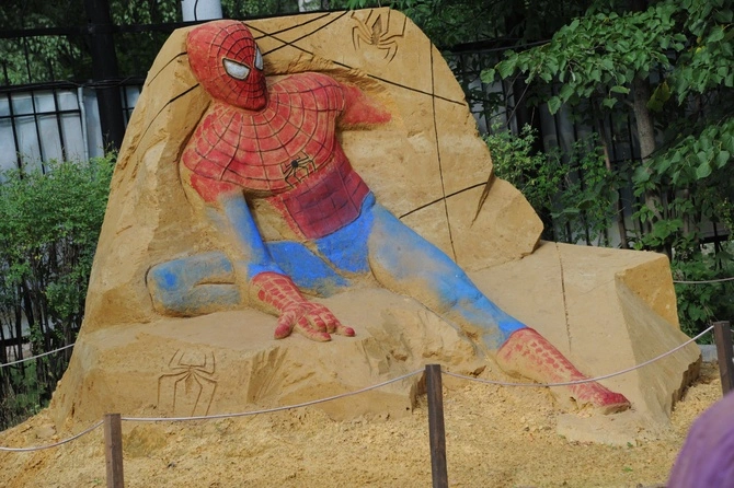 Песчаная статуя Человека-Паука на выставке в "Сокольниках"