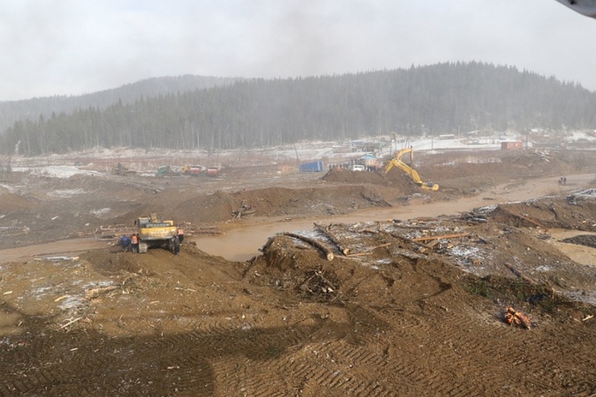 Место прорыва дамбы в Красноярском крае