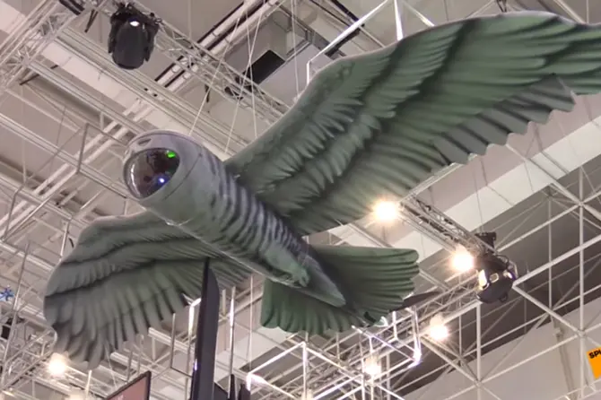 Впервые беспилотник-шпион в виде совы увидел свет на форуме «Армия-2019». Вес его составляет 5 кг, он умеет выяснять координаты цели и «зависать» в воздухе до 40 минут и летать на расстояния в 20 км.