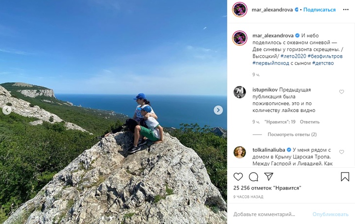 «Любимый Крым!», «До чего же вы красивая женщина!» «Марина, а сын как подрос, уже вас догнал. А скоро и перегонит!» — прокомментировали поклонники.
