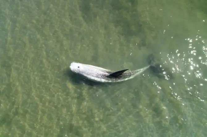 Весит тонну: застрявшего в иле краснокнижного дельфина пришлось нести на руках
