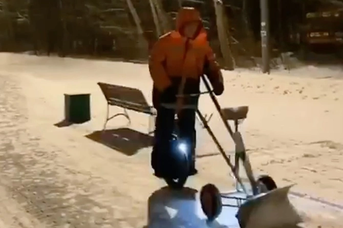 На кадры видео попал находчивый дворник столицы, который убирал снег с улиц Москвы, балансируя на моноколесе. Соответствующий ролик опубликован на канале «Московские новости» в мессенджере Telegram.