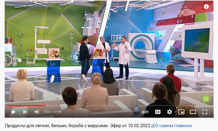 «Первый продукт — это яйца. Они не повышают холестерин и являются источником белка, витамина А, В, D и селена. Легкие состоят из волокнистой соединительной ткани, и легочные альвеолы покрыты веществом, которое состоит преимущественно из жиров», — сказал он в эфире программы «О самом главном» на телеканале «Россия 1».