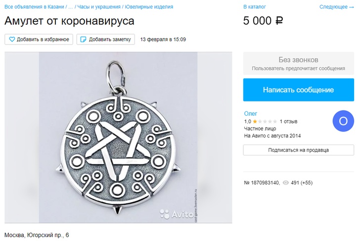 В своем объявлении Даниил был краток: «Амулет». И на этом все. Видимо, стоимость изделия должна говорить сама за себя.