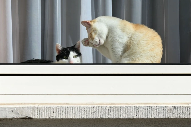 Жизнь на три дома: коты на локдауне нашли верный способ получить добавку