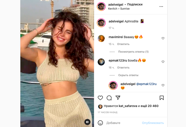 22-летняя Адель Вейгель с шиком отдыхает в Дубае. Сегодня модель поплавала на яхте.