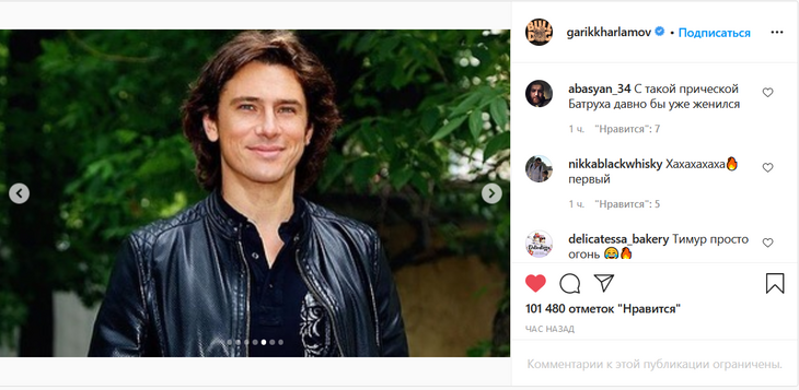 «Волосы решают все. Листайте», — написал Гарик Харламов.