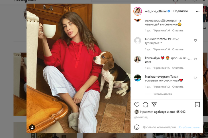 В Сети комментарии были преимущественно положительные. «Такая уставшая, но счастливая», «Какая вы красивая», «Красота — страшная сила», «Какое уютное фото», «Кети, вам очень идет и цвет, и материнство», «Красавица и умница до космоса и обратно», — писали ей.