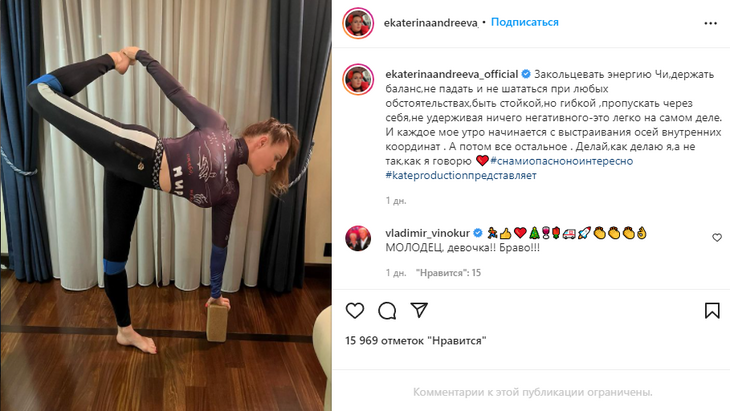 «С понедельника начинаю очистительную гимнастику по утрам и йога вечером», «Не перестаю Вами восхищаться», «Надо тоже попробовать!», «Прекрасная и спортивная».