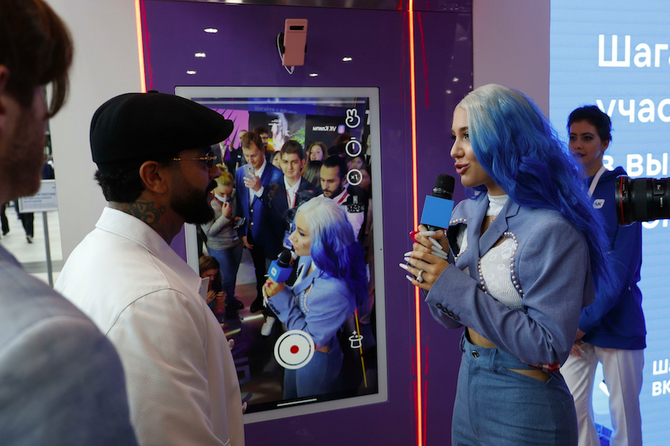 Особое внимания звезды привлек мультимедийный стенд с треками современных исполнителей, об этом сообщает издание Life.ru. На данном экспонате Тимати, совместно с певицей MIA BOYAKA, записал первый VK-клип на песню Rolls-Royce.