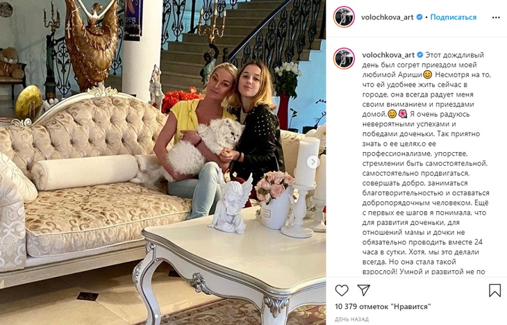 Она отметила, что чтобы быть близкой с дочерью, не обязательно общаться сутки напролет. Волочкова написала, что дорожит ее отношением к себе.