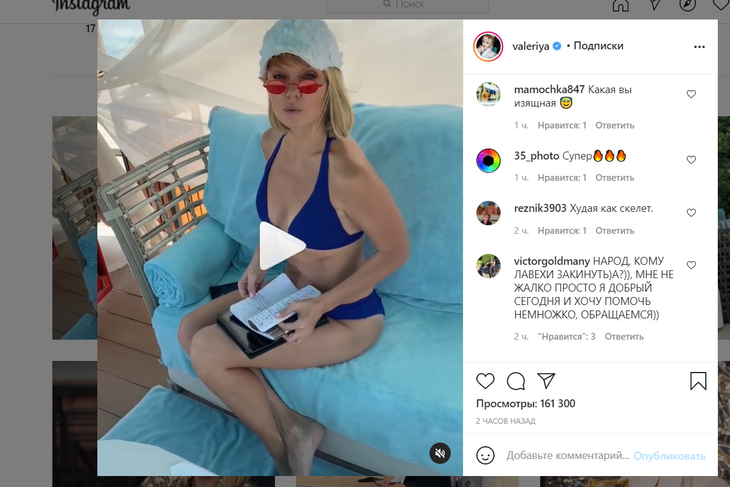 В комментариях, в свою очередь, поспешили отметить — Валерия в купальнике выглядит излишне худой.