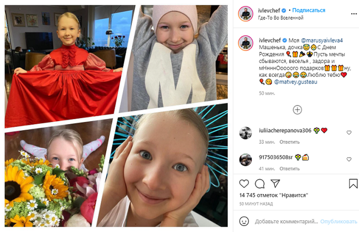 «Моя Машенька, дочка. С днем рождения! Пусть мечты сбываются, веселья, задора и мно-о-ого подарков. Ну, как всегда. Люблю тебя», — трогательно подписал ресторатор фото в Instagram.